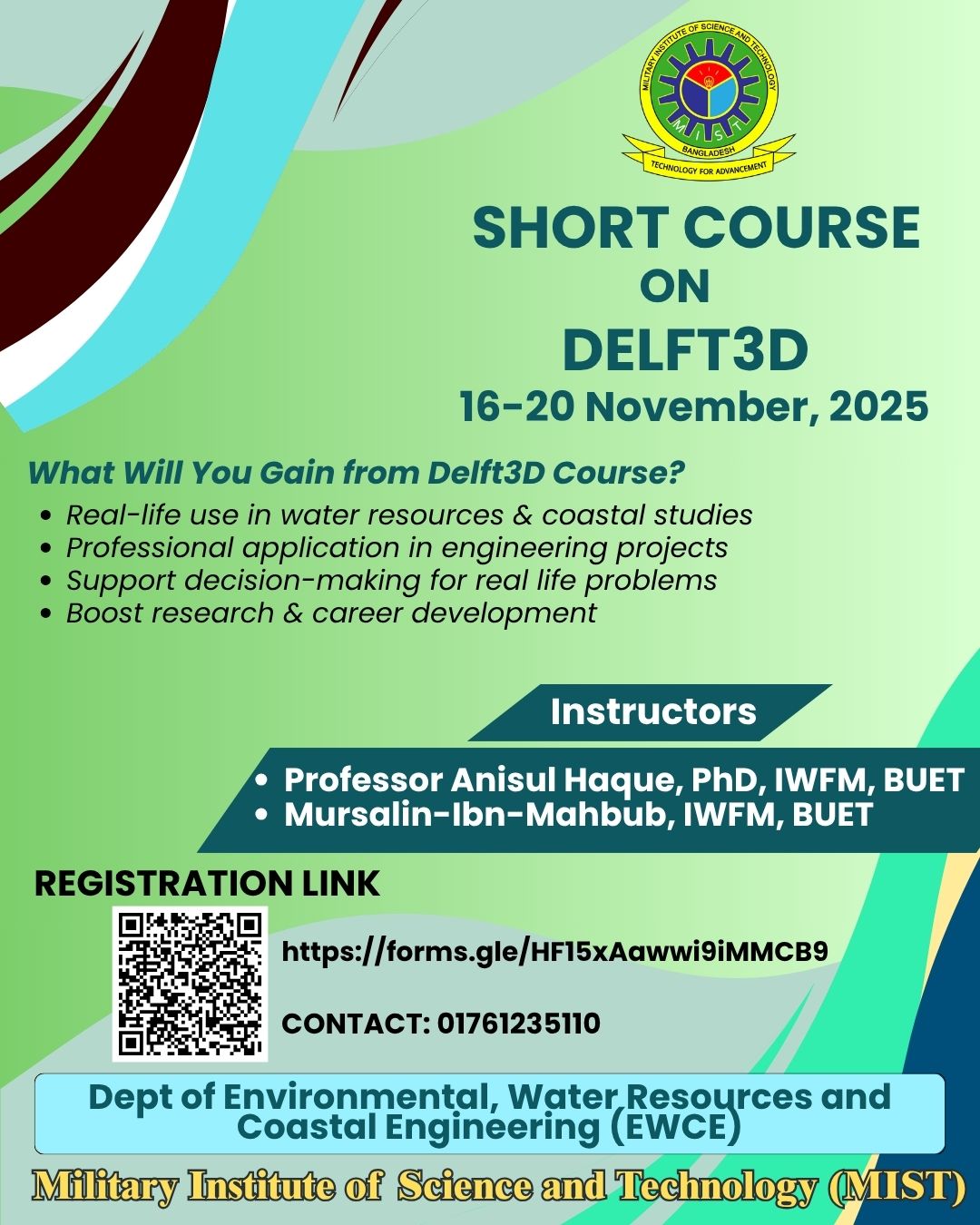In collaboration with the Climate Lab (HEQEP) and WaterAid, the EWCE Department hosted the International Conference on Climate Change and Water Security (ICCWS 2015) on December 27, 2015, at MIST. The conference centered on utilizing engineering, technology, and policy-based approaches to enhance water security and address the impacts of climate change.